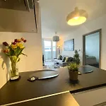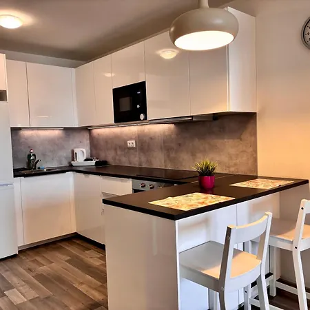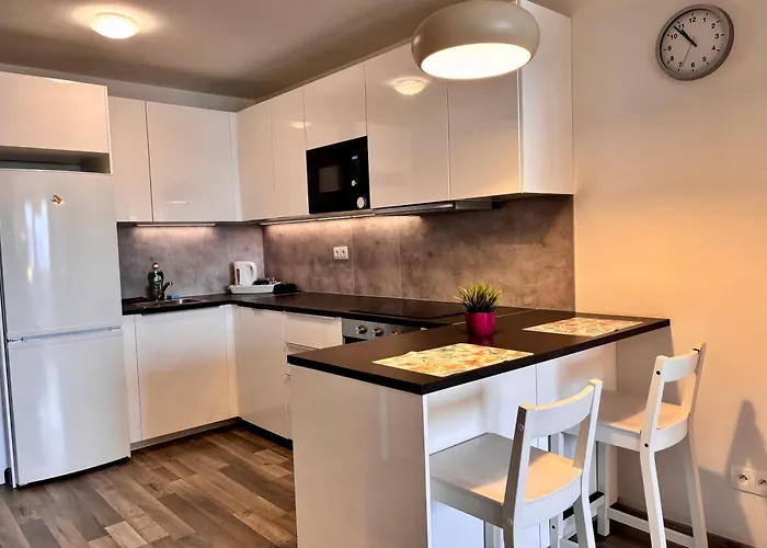 El New Apt In New Building Located Begin Of Petrzalka Apartamento Bratislava también se encuentra a aproximadamente 600 metros de New Bridge. Este apartamento de 55 m^2 ofrece instalaciones modernas, como Wi-Fi y servicios esenciales como un aparcamiento privado gratuito para los que viajan en coche.